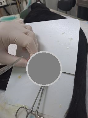 Mit höchster Vorsicht, damit der Eiter schön in der Gebärmutter bleibt, hat Ofir die OP durchgeführt.