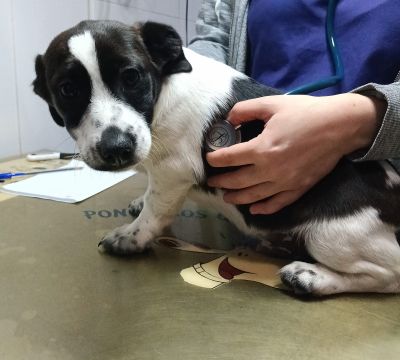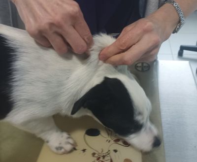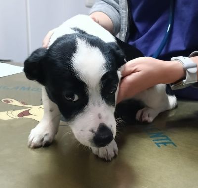 Zwischenzeitlich waren die drei schwarz-weißen Welpen beim Tierarzt zur Kontrolle.