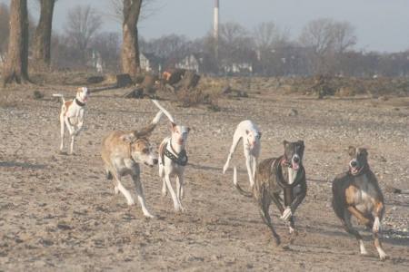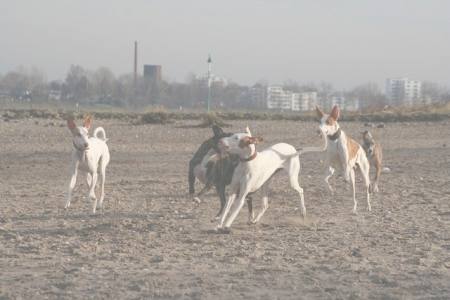 Wow, das ist echt hart.. da in der Mitte… das ist Laika, dieses scharfe KG-Geschoss, genau wie ich von Ibiza. Und … was ist denn das da vorne…. oh nein, GALGOS!!!!