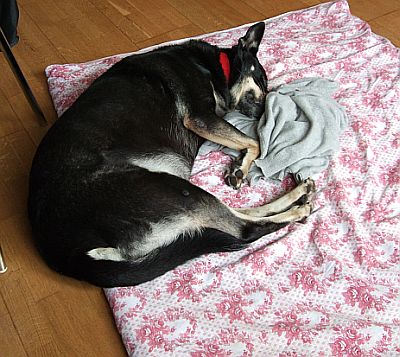 Und noch schöner ist es wenn Britta abends, bei uns ruhig in ihrem Körbchen liegt und ganz entspannt schläft.