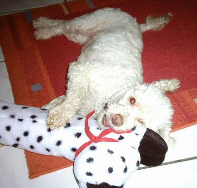 Zuhause angekommen war ich wieder putz munter, und meine beiden Frauchen mussten dann erst mal mit mir spielen.