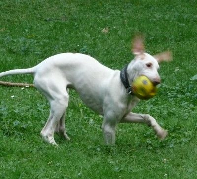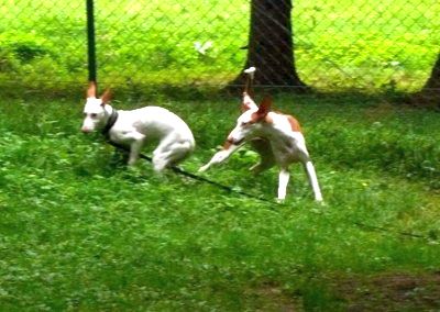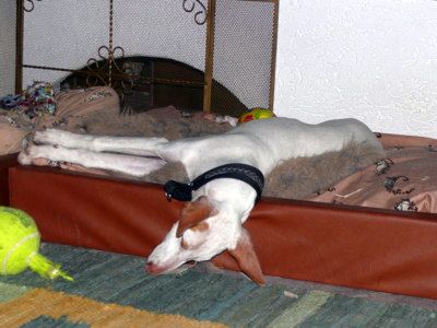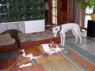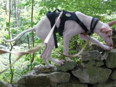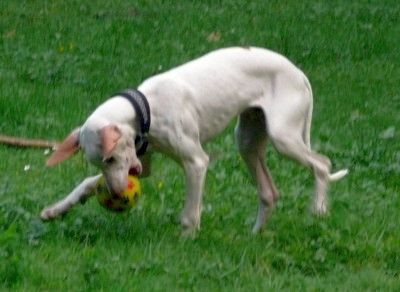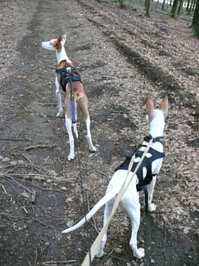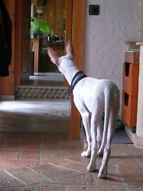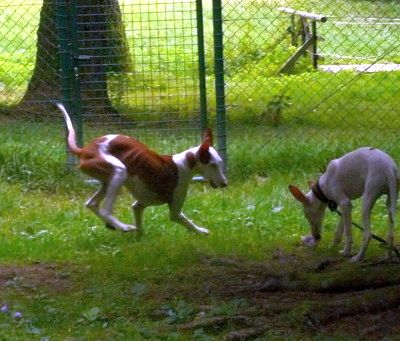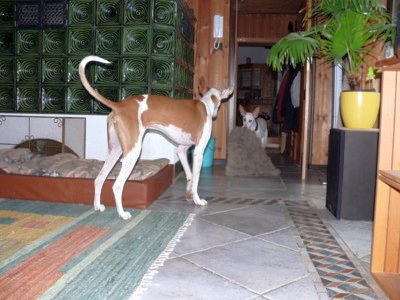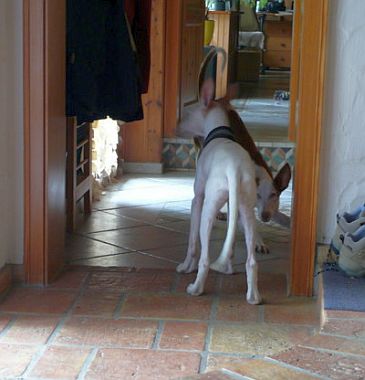 Ja, ich habe den längsten Schwanz, den ein Podencorüde nur haben kann, der ist an meinem Halsband festgemacht und fliegt immer hinter mir her.