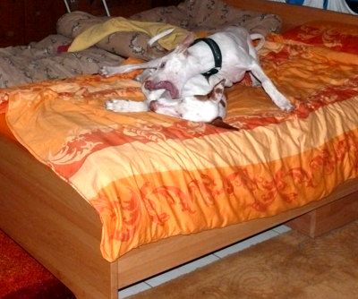 Und auf Mamas Bett dürfen wir auch rumtoben – ist das nicht toll ?