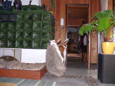 Das war total interessant - was man da alles riecht -himmlisch - und auf dem Rückweg, kurz vor dem Haus habe ich die abgebröckelte Außenmauer des Nachbarn entdeckt, die musste ich mir genauer ansehen, - springen und klettern kann ich nämlich gut !