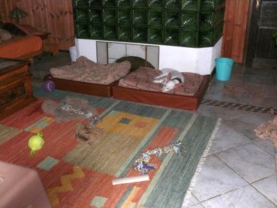 Und Mama sagt auch, dass das gar nicht so schlimm ist, das ganze Chaos und dass die Pippis ruhig mal auf den Boden und auf die Teppiche und auf die Liegeplätze – natürlich nicht auf meine – und auf dem Sofa landen dürfen.
