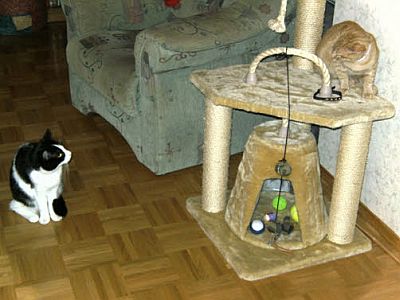 Ja hallo, wer ist denn da? – Wer sitzt auf meinem Kratzbaum? Und wer sitzt da unten auf dem Boden?