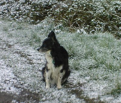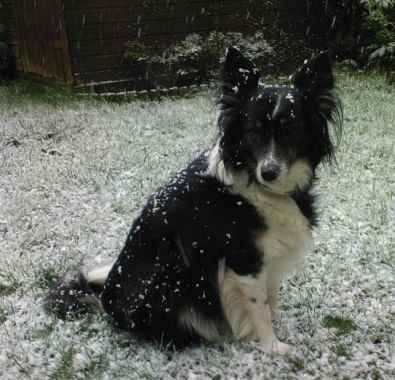 ...da tanzen die Flocken auf Jolly´s Nase.....die Begeisterung hält sich in Grenzen...