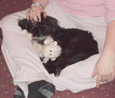 Hmmm, suuuuperlecker! Hab das Ding ratz fatz weggezaubert! Hi, hi! Das ging so schnell. Ratttattttattta… mein Gebiss ist so schnell wie eine Nähmaschine! Danach war Spielen angesagt. Hab mir nen Stoffaffen ausgesucht. Der hat die Nacht leider nicht überlebt. Ooooooohhhh Schade!!!! Dann wurde ich doch müde.