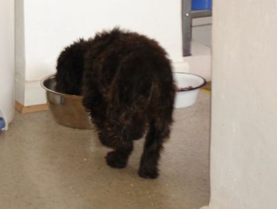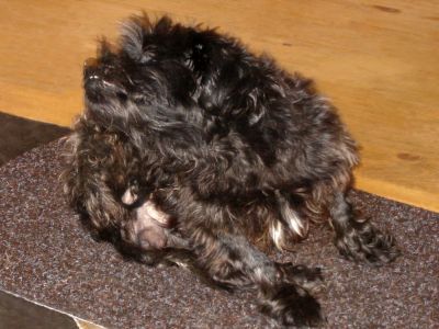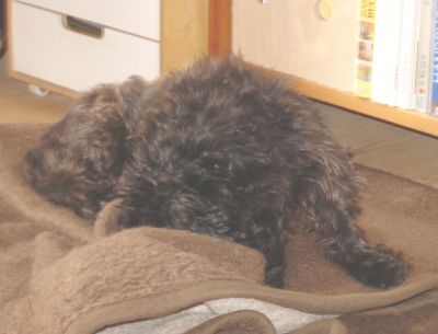 Abends schon wieder was Neues - Tierarztcheck, mal die Ohren sauber machen und alles kontrollieren - kein Problem!! Die Tierärztin ist nett und während meine 'große' Freundin / Schwester?! - "Fenja" - untersucht wird, habe ich mich mal auf unseren Hundemänteln eingerollt und halte ein Nickerchen................