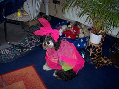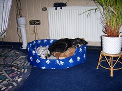 Aus dem Staunen komme ich gar nicht mehr raus. Die Menschen hier holen sich sogar Bäume ins Haus, um sie dann mit allerlei Krimskrams zu behängen. War ja ganz interessant, aber das Bein daran heben durfte ich doch nicht. Ich habe auch schon viel in der Hundeschule gelernt. Eigentlich weis ich was ich so darf und was nicht, wenn dann aber die Pferde mit mir durchgehen muss ich halt doch schon mal Blödsinn machen, aber meine Menschen nehmen`s mit Humor.