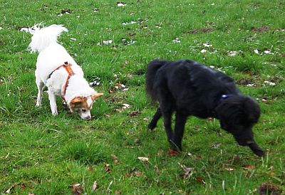 Wir suchen immer zusammen Mauselöcher und ich schnapp mir die Mäuse dann (Findet Fraule aber gar nicht schön).