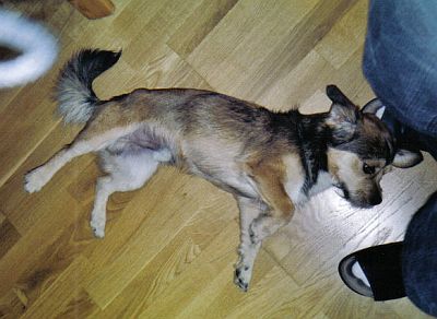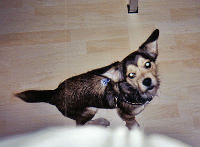 Na Hilfeeeeee, wer kommt denn da auf mich zu gepoltert? Oh je, hatte ich eine Panik, als die Schwiegermutter von meiner Mama auf mich zukam und mich angrapschen wollte. Ich nahm allen Mut zusammen, knurrte laut (wie ein Großer) und schnappte nach ihr! So ging das doch wohl nicht, wo kommen wir denn hin, wenn mich hier jeder anfasst, obwohl ich das nicht will! Die Leute sollten mal auf meine Körpersprache achten, wenn ich geduckt, zitternd und mit eingezogener Rute dastehe, sollten sie mich in Ruhe lassen! Aber sie ließ nun wirklich keine Sekunde aus, um sich bei mir einzuschleimen, was ich jedoch nicht zuließ, ich wollte nur bei meiner Mama sein. Ging sie ohne mich weg (und sei es, dass sie nur zur Toilette ging), rannte ich mit flotten Pfoten hinter ihr her und vor der Tür wimmerte ich dann ganz laut, bis sie wieder da war!