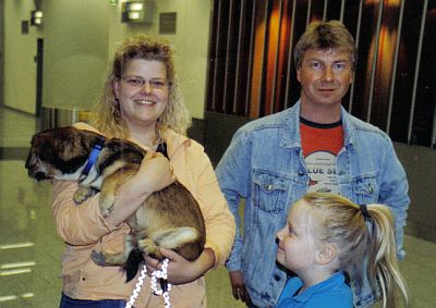 Unsere Steffi machte noch ein Foto von MIR und meiner neuen „Familie“ und ab gings … glücklicherweise hat meine Mama mich bis zum Auto getragen, obwohl das kein Problem war, denn ich wog damals nur 5 kg!