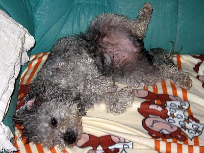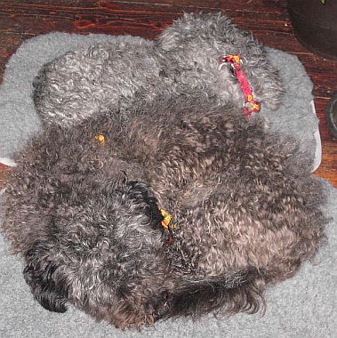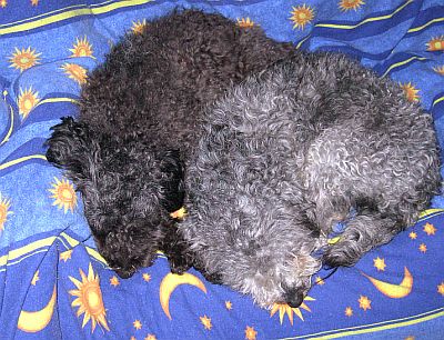 Und wir teilen uns das Bett unserer Menschen. Ich natürlich zwischen Frauchen und ihrem Mann und Penny am Fußende wo ich dann auch meistens von meinen Leuten sanft hingeschoben werde.