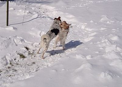 Heute habe ich meinen Zweibeinern mal gezeigt wie ich durch den Garten fege, richtig viel Schnee, einfach Klasse.
