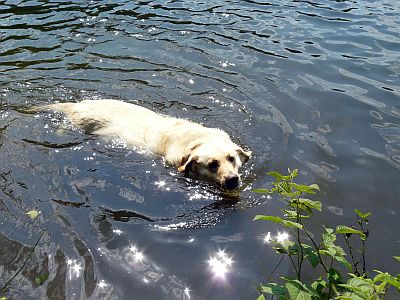 Ach ja und wir gehen mit Flocke wenn es das Wetter erlaubt schwimmen, wo sie doch nie ins tiefe Wasser wollte im vorigen Jahr, so ist sie dieses Jahr mit mir zusammen ins tiefe und was sollen wir sagen ihr macht das riesig Spaß.