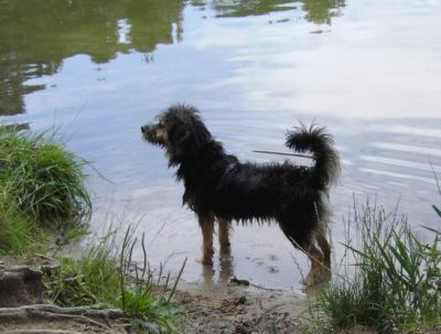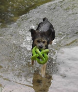 Dabei bin ich inzwischen TOPFIT im Wasser; wir "üben" ja auch z.Z. jeden Tag. Gestern konnte ich mein neues Schwimmspielzeug ausprobieren. (Hat Frauchen auch wieder irgendwo im Internet ergattert). "Floati" auf Neudeutsch ist echt prima, weil man es total gut mit der Schnauze im Wasser greifen kann und auch immer gut sieht, weil es über die Wasseroberfläche hinausragt.