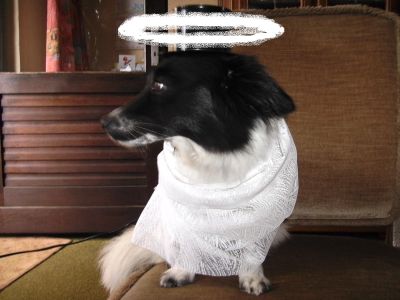 Oder das hier. Leute, habe ich etwa Flügel auf dem Rücken? Habe ich vielleicht Pausbacken? Oder sitze ich etwa grinsend auf dem Wohnzimmerschrank? Nein! ICH BIN KEIN ENGELCHEN!!! Bestenfalls ein Hungelchen, aber kein Engelchen!!! Auuuuuu!
