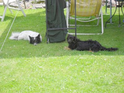 Mitten in der Nacht kamen sie ganz aufgekratzt zurück. Ich musste noch mal den Träger anziehen und wurde nach draußen geschleppt. Da stand sie nun, meine Überraschung. Wuff, und was für eine. Ein kleines, stinkendes, verfilztes Etwas stand da vor mir wie ein Häufchen elend. Mein Rudel turnte ganz aufgeregt um uns herum und sagte mir immer wieder, dass dies mein Prinz sei und ach isser nicht süüüß? Was, Wuff, dieses stinkende Häufchen soll mein Prinz sein und in meinem Schloss wohnen?