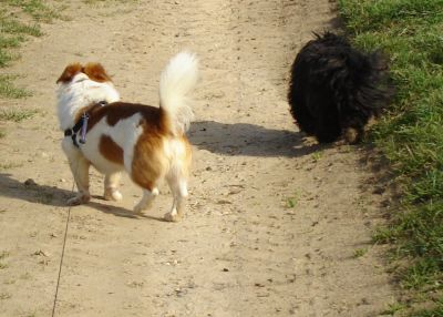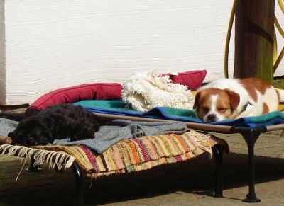 Herrchen meinte, wir könnten mal 'ne Rast einlegen, pfff wofür, wir sind topfit. Schließlich erwartete uns das nächste Abenteuer, ' ne Kumpeline aus Ungarn!!