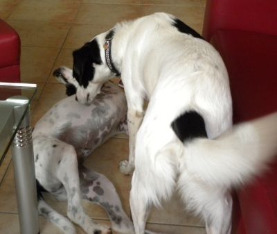 Naja, ein Vorteil hat das ja dann doch noch mit den kurzen Haaren: das Winterfell hat mich ja doch die letzte Zeit sehr gejuckt nach jedem Spaziergang. Und ich seh jetzt meiner Schwester wieder viel ähnlicher. Meine Leute meine, das ich "putzig" aussehen, ist das nicht unverschämt. Ich und putzig, pahh! Naja, werd mir das mit einer neuen Familie aber doch lieber nochmal überlegen. Habs ja doch ganz gut hier!