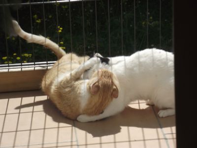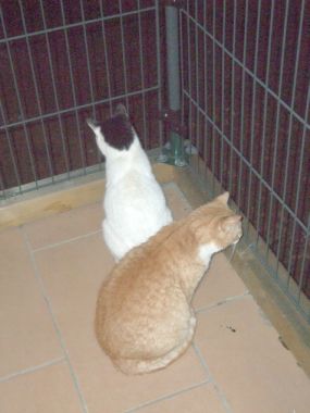 ... wir Schlafen zusammen, wir Liegen zusammen auf dem Balkon und beobachten die Mäuse und Vögel, wir Blockieren gemeinsam die Hundekörbchen. Und wir Schnorren und Klauen auch zusammen…