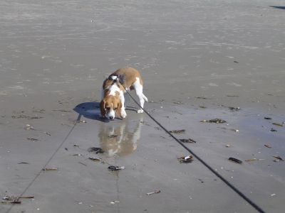 Jeden Morgen waren wir am Strand spazieren. Das war toll. Da gibt es immer so viel Interessantes zu schnuppern. Dieses Jahr haben wir es sogar in den Hundewald geschafft. Das ist der einzige Ort auf Fanö wo wir Hunde ohne Leine laufen dürfen, weil das Waldstück komplett eingezäunt ist. Mama und Papa haben mich aber trotzdem nicht von der Leine gemacht, sie sagen dass das Gelände viel zu groß ist, falls ich doch mal eine Hasenfährte finde. Dann müssten sie mich den ganzen Tag suchen. Hihihi....kennen mich halt gut die beiden.