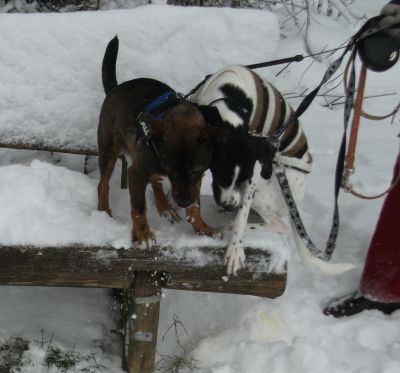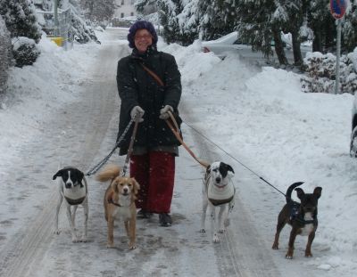 nachdem es viele Schneenachrichten gab, schicken wir euch jetzt eine echte Schneegeschichte. Wir, dass sind Merlin (Dario aus Almendralejo), Milla (GC), Lisa (Menorca) und Wally (Almendralejo).