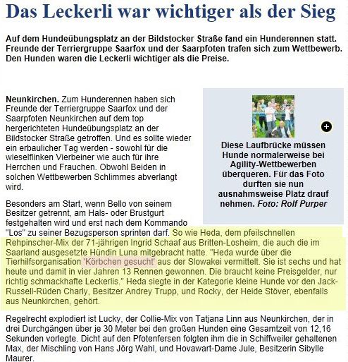 Ich stand kürzlich in der Saarbrücker Zeitung, wo auch "Koerbchengesucht" erwähnt wurde. Ich habe dir mal einen Screen davon gemacht.