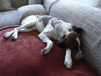 Am Nachmittag muss Frauchen auch noch vorm Computer sitzen und arbeiten. Wir müssen natürlich wieder warten, wie man sieht.
