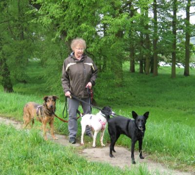 Und ewig hantierte sie mit diesem lindgrünen Pudel rum. Mensch wir wollen endlich weiter. Wenn sie nicht mit will, wird sie schon sehen, was sie davon hat. Man beachte Alex ihre Leine…..würg.