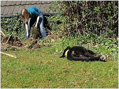 Zwischendurch habe ich dann meine Position mal geändert und bin mit den Garten gekommen. Ich muss doch im Blick haben, ob die beiden da alles richtig machen und mir nicht mein Paradies kaputt machen. Dass die nicht auch einfach mal Siesta machen können; es ist doch schließlich Wochenende. Naja ich nehme mir die Zeit und genieße meine Siesta auf der Wiese: