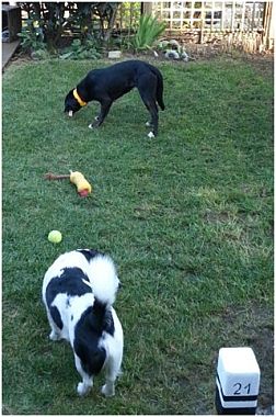 Hier kann man schön flitzen, ganz ohne Leine und ich darf mit allen spielen. Und ja ich bin da sehr wählerisch, ich spiele nicht mit jedem; manchen aufdringlichen Rüden muss ich erstmal in die Schranken weisen und einem neuen Kumpel musste ich erstmal alles zeigen, wie groß die Wiese ist, wie gut es hier riecht und wie schnell ich laufen kann; ratet mal wer beim Wettrennen gewonnen hat. ;) Und auch Thomas und Steffi haben mich immer wieder gerufen und wenn ich dann zu ihnen gekommen bin haben wir uns alle 3 riesig gefreut. Nicht dass die beiden mal ohne mich zum Auto gehen. Da muss ich immer schon aufpassen wo sie sich hinbewegen, wenn sie mich rufen bin ich sofort da. Wir sind ein gutes Team. Puh, nach der Spielstunde bin ich aber ein bisschen geschafft und Hunger hätte ich auch. Ob es wohl das leckere Fleisch zum Mittagessen gibt? Hmmm..