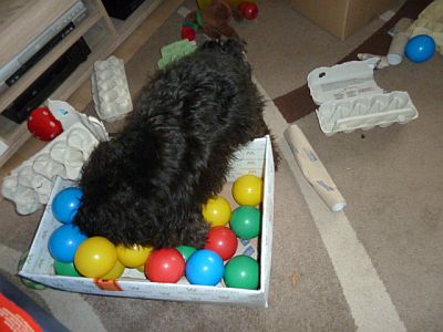 Hier bin ich dabei Leckerchen zu suchen, das kann ich richtig gut. Natürlich kann ich ganz viele Sachen machen.