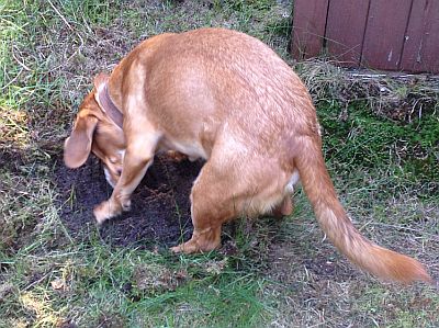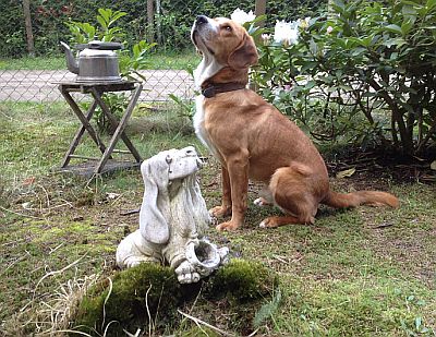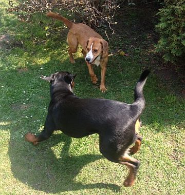 Als wir dann da waren, da wußte ich sofort: hier gefällt es mir! Da gab es nur ein Problem - über den Winter hatte ein anderer Hund den Platz von meinen Leuten bewacht. Dem mußte ich dann erstmal klar machen, dass ICH jetzt hier der Platzhirsch bin. Ich meine, was der kann, das kann ich schon lange.