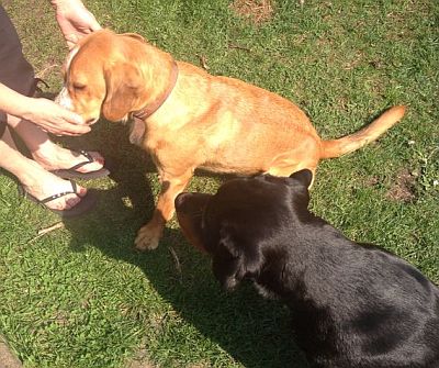 Was mir richtig gut gefallen hat war, als wir bei Campingnachbarn auf dem Platz waren und ich dort eine neue Freundin kennen gelernt habe. Yuma heißt sie und ist ne ganz fesche Maus. Da ging dann erstmal die Post ab.