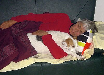 Nachdem wir wieder zu Haus waren und ich mich gestärkt hatte, habe ich Frauchen zu einem Nachmittagsschläfchen überredet.