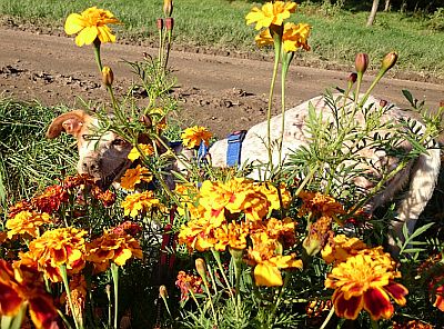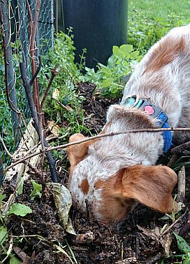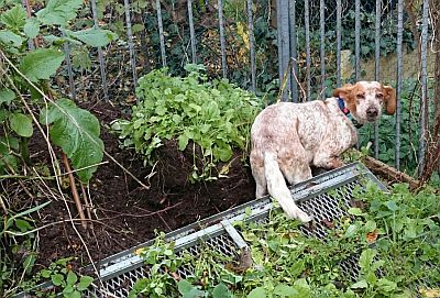 Jetzt kann ich endlich mal loslegen. Während mein Frauchen in der einen Ecke vom Garten gegraben hat, habe ich mir mal die andere Ecke vorgeknöpft.