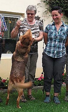 Und ich habe von Watson und Hamlet noch was gelernt: Es gibt Bälle, mit denen man toll spielen kann und die hinterher auch noch toll schmecken. Menschen nennen es Äpfel.
