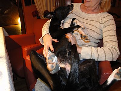 Tante Steffi, kannst du erkennen, wer da ganz hinten auf dem Sofa leise vor sich hinschnarcht ? Na klar, Samira hat es sich da mal wieder bequem gemacht.