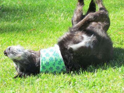 Jetzt funktioniertes bei mir gar nichts mehr. So schnell es irgendwie ging zum Doktor. Ich bekam Kortison, starke Schmerzmittel und musste an den Tropf. Zum Glück war mein Lieblingsdoktor da und hat mir eine grüne Halskrause verpasst. Er ist eben ein echter Freund und weiß, dass rosa Halskrausen nur etwas für Mädchen sind. Außerdem ist grün die Farbe der Hoffnung. Abends konnte ich wenigstens schon wieder mein Köpfchen heben.