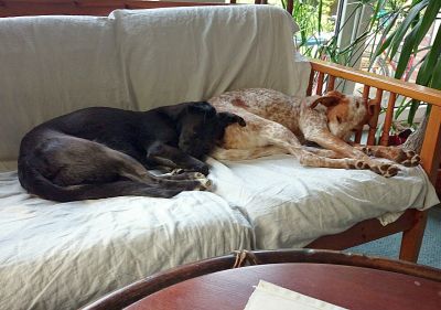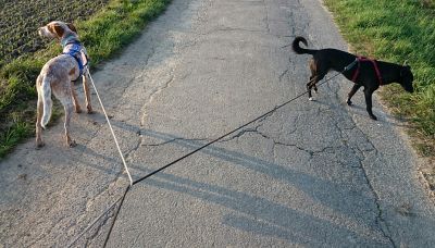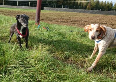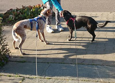 ist es mir gelungen, 2 echten spanischen Mestizen ansatzweise die hohe Kunst der spanischen Hofreitschu... äh - des deutschen Hundesimultanbewegens beizubringen.