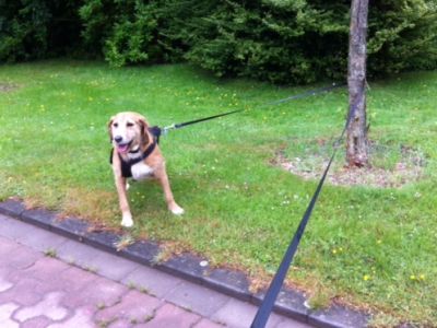 Hier entdeckt Oona, wieviel Spaß es allen Beteiligten macht, ab und an ein kleines Baumspiel in den Spaziergang einzubauen.