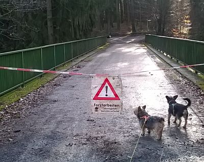 und dann ist der Spaziergang ganz plötzlich rum, weil in einem schneefreien Dezember Forstarbeiten durchgeführt werden