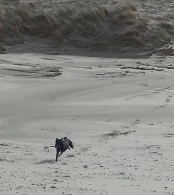 Zwischendurch bin ich auch mal ein bisschen nass geworden, wenn ich so über den Strand und am Meer entlang getobt bin.