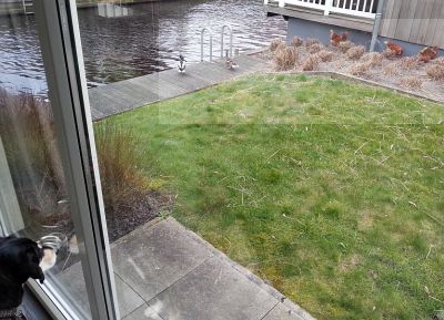 Als nächstes habe ich nach unserer Ankunft die Terasse untersucht. Da unten schwammen tatsächlich echte, lebendige Enten herum, das fand ich sehr interessant.