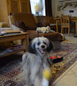 Aber Frauchen und Herrchen wissen was mir noch mehr gefällt- mein Lieblingsspiel: