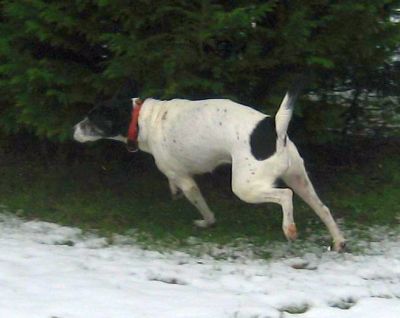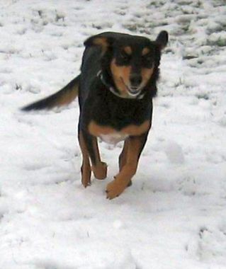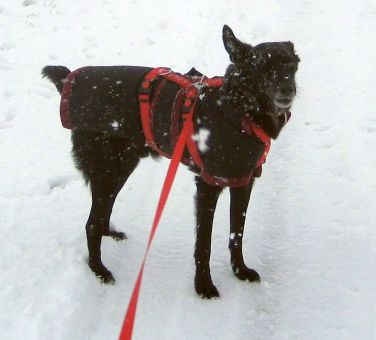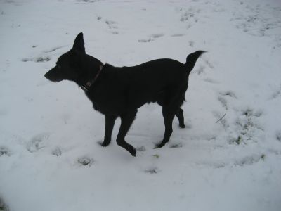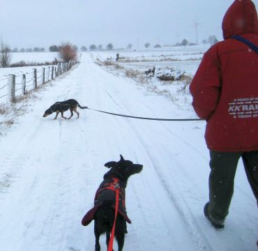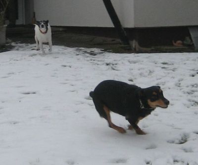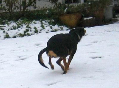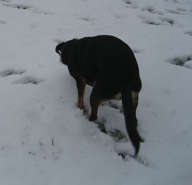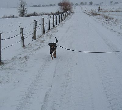Da laufe ich mich mal ganz schnell in Herrchens Fußstapfen.