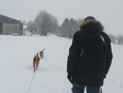 Herrchen ist auch mit, gut eingepackt gegen die Kälte….