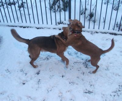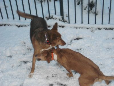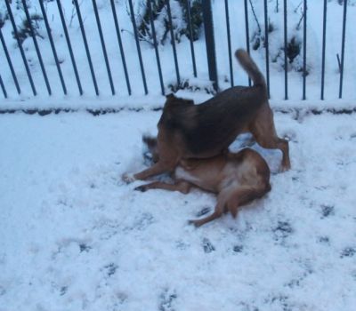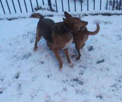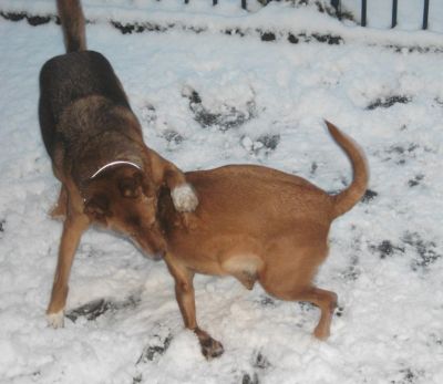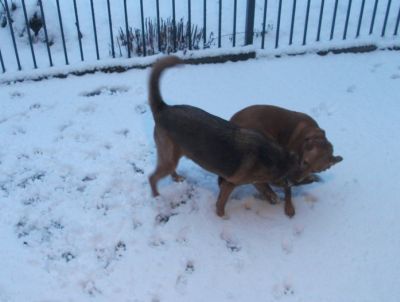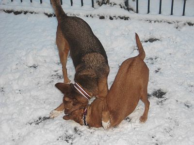Was waren wir heute morgen erstaunt, als unser Frauchen die Tür öffnete: Das tolle weiße Zeugs war wieder da!